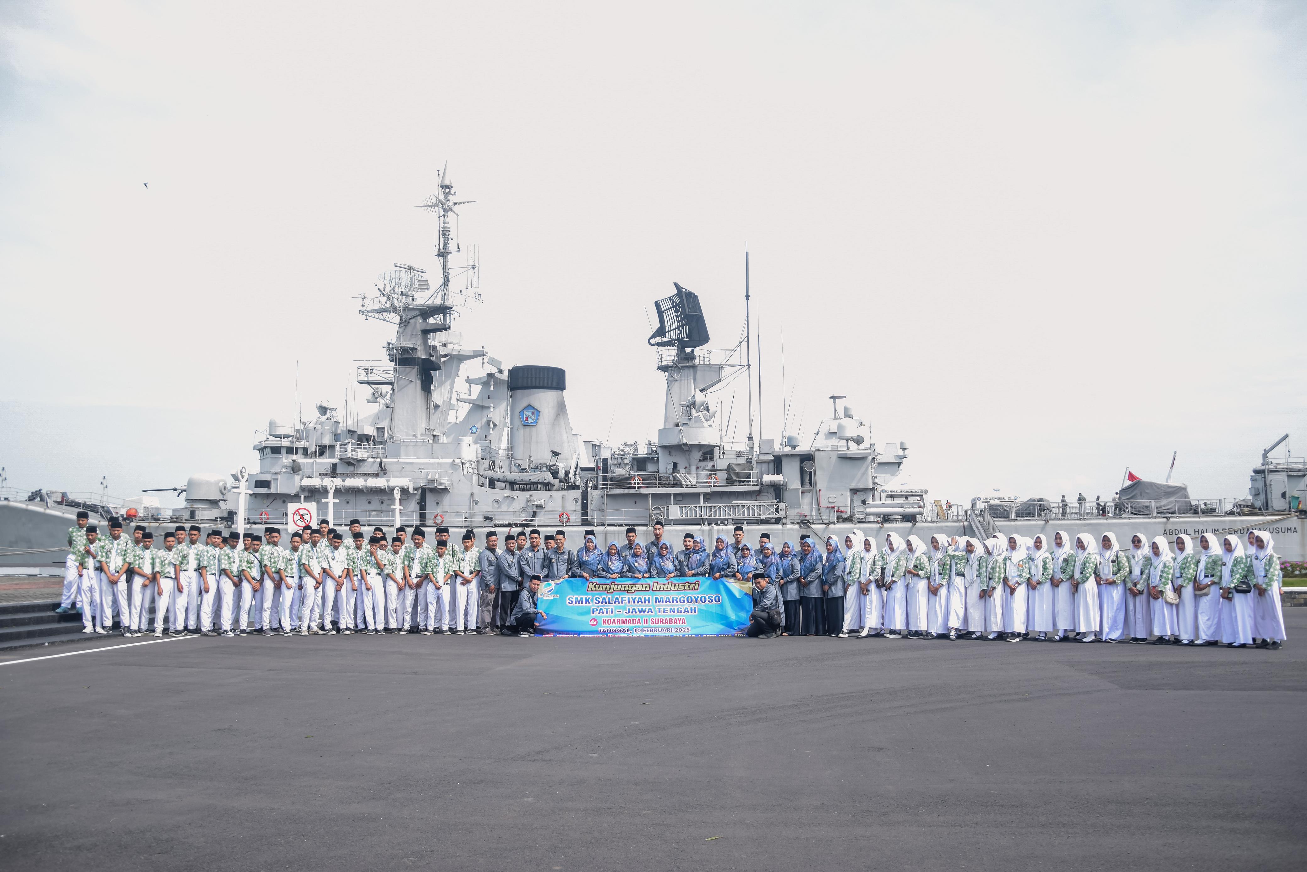 Surabaya, 13 Februari 2025 – Sebagai bagian dari program pembelajaran berbasis industri, siswa-siswi kelas 11 dari tiga kompetensi keahlian di SMK Salafiyah, yaitu Busana, Teknik Jaringan Komputer dan Telekomunikasi (TJKT), serta Pengembangan Perangkat Lunak dan Gim (PPLG), berkesempatan melakukan kunjungan industri ke Komando Armada II (Koarmada II) Surabaya. Kegiatan ini bertujuan untuk memperluas wawasan siswa mengenai dunia maritim, teknologi pertahanan, serta disiplin dan etos kerja yang diterapkan di lingkungan militer.