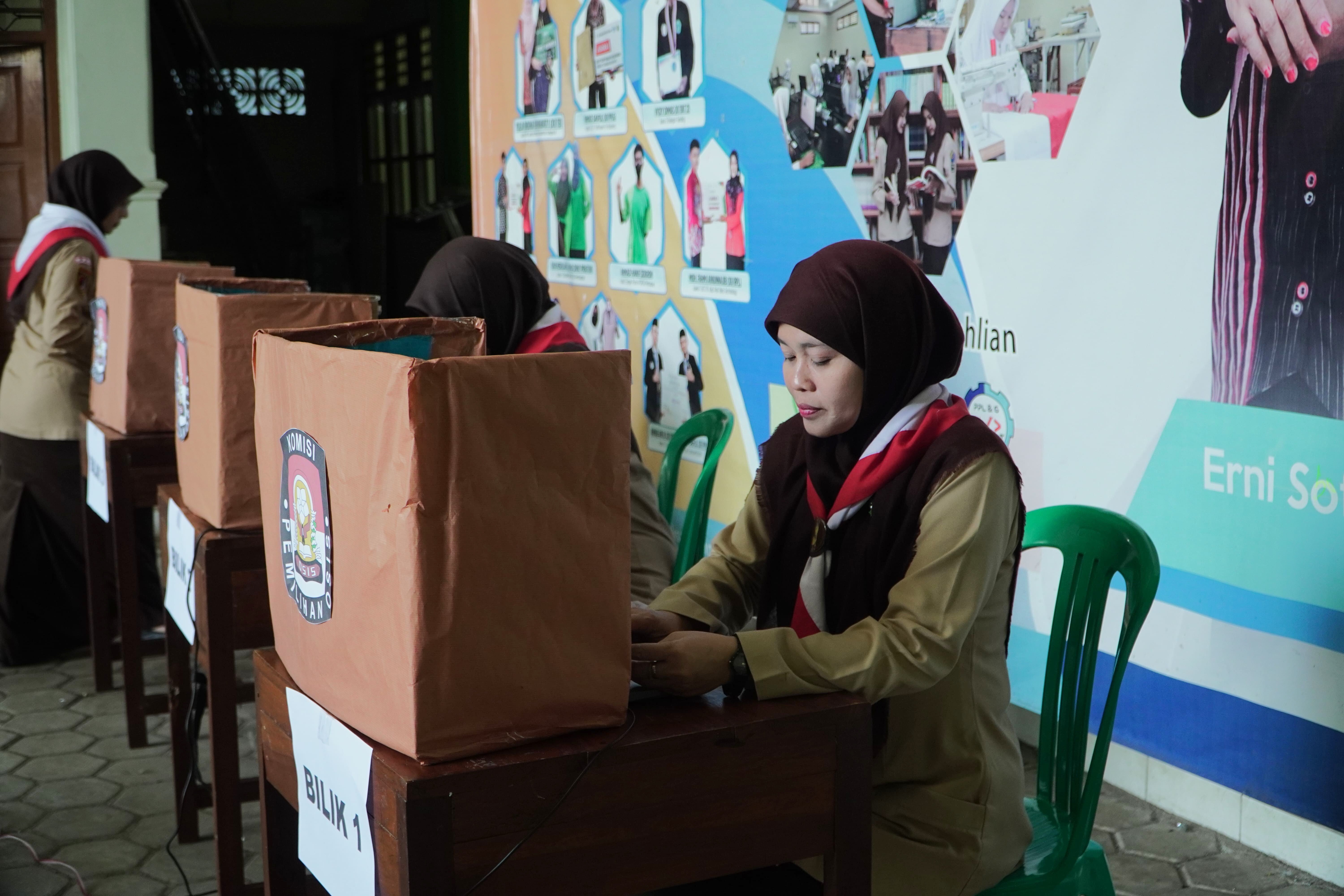 Seluruh siswa secara langsung memberikan hak pilihnya melalui aplikasi yang telah disiapkan. Proses pemungutan suara berlangsung tertib, transparan, dan modern, sejalan dengan semangat digitalisasi yang dikembangkan di SMK Salafiyah.